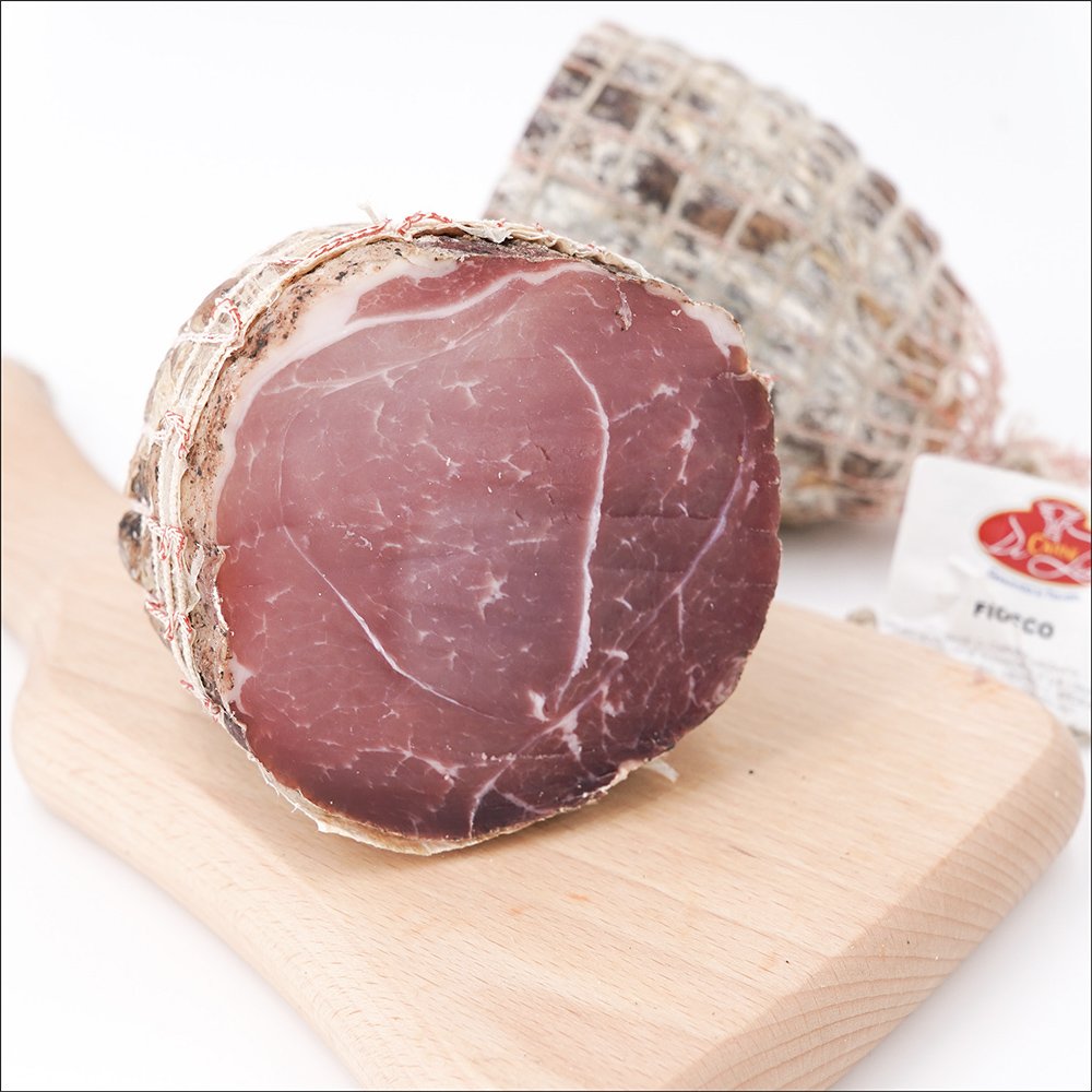 Una volta sezionata la coscia del maiale per il prosciutto e tolto il Culatello, resta il Fiocco. Il Fiocco, noto anche come Fiocchetto, è la sezione più piccola e muscolosa della parte posteriore della coscia suina, ricavata dalla stessa porzione del Culatello.